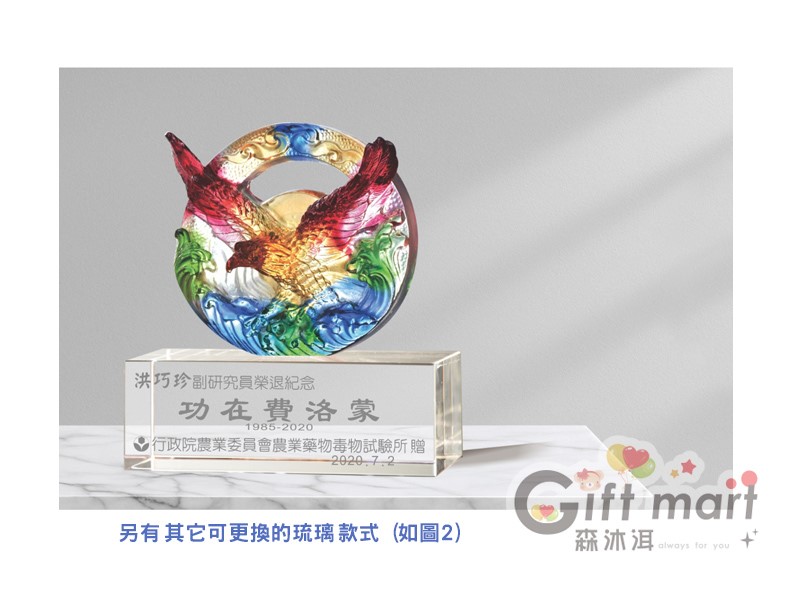 精雕細琢,品味獨特各種誌慶、紀念表揚升遷榮調、競賽獎勵饋饋佳品,訂製首選晶瑩剔透、光澤璀璨將品味融入生活,使生活充滿色彩(※琉璃在燒製過程中,顏色會自然流動,使得每一件作品的色彩、紋路和光澤都是獨一無二的。這項特色是琉璃工藝的獨特魅力,即使是同款作品,顏色也會有所差異,煩請知悉)展翅高飛/大鵬展翅/鵬飛鷹揚擺飾/競賽/紀念/琉璃水晶獎牌/水晶琉璃獎座/琉璃水晶獎座/琉璃水晶獎座/水晶琉璃系列