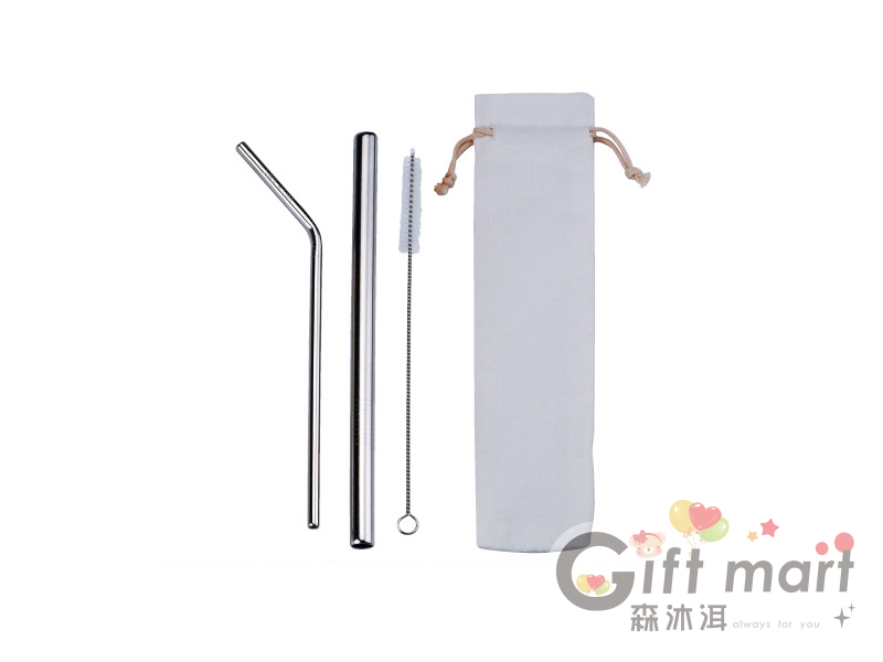 規格:粗吸管-直徑1.2cmX22cm 彎吸管-直徑0.6cmX20.5cm 刷子長20cm/棉麻布袋24X6cm包裝:OPP袋另可一處單色印刷LOGO 或 外包裝貼貼紙宣傳文宣