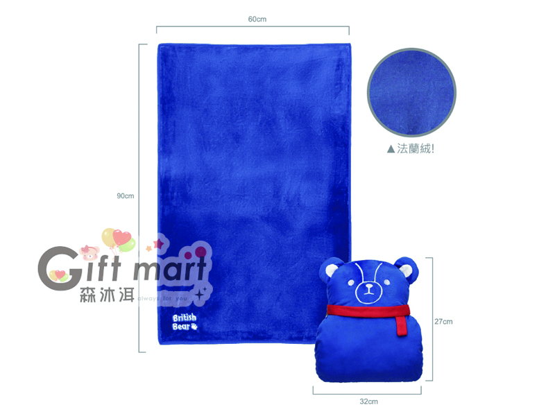 英國熊雙面複合法蘭絨毯(150x180)(附提袋)