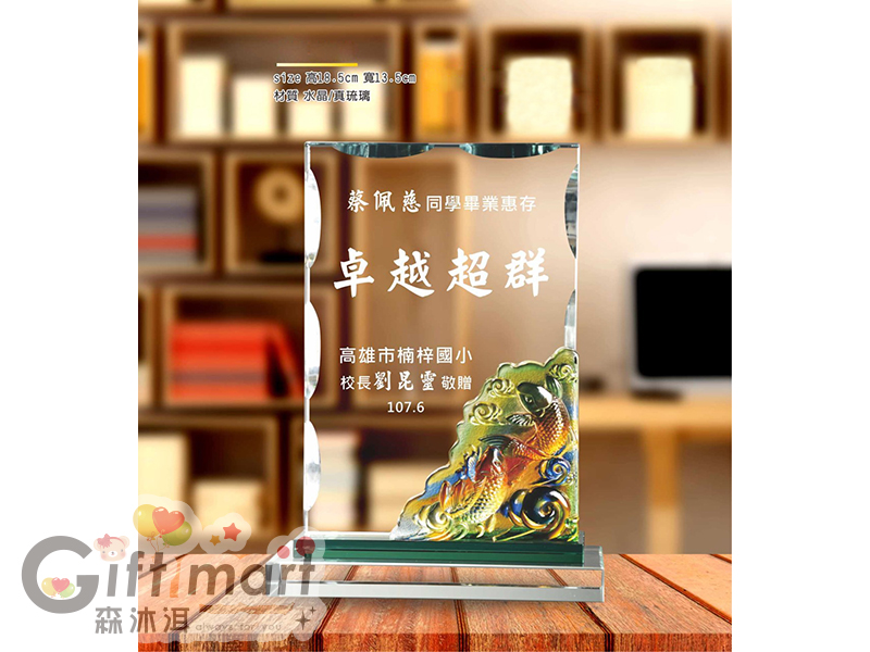 琉璃水晶獎牌(21x12)-魚躍登峰