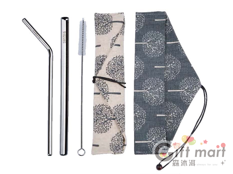 不鏽鋼(#304)餐具吸管組-3件+小麥圓筒盒