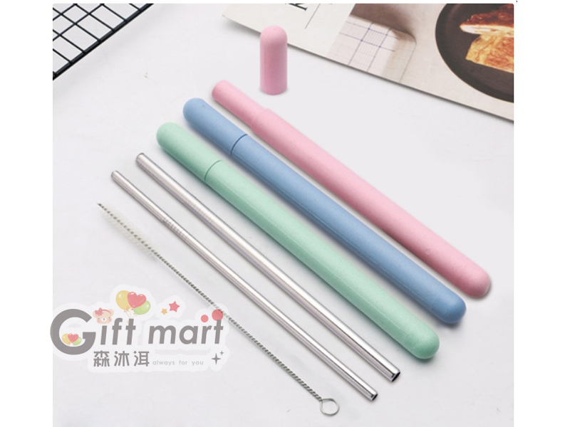 不鏽鋼(#304)吸管組加筷-4件+小麥圓筒盒
