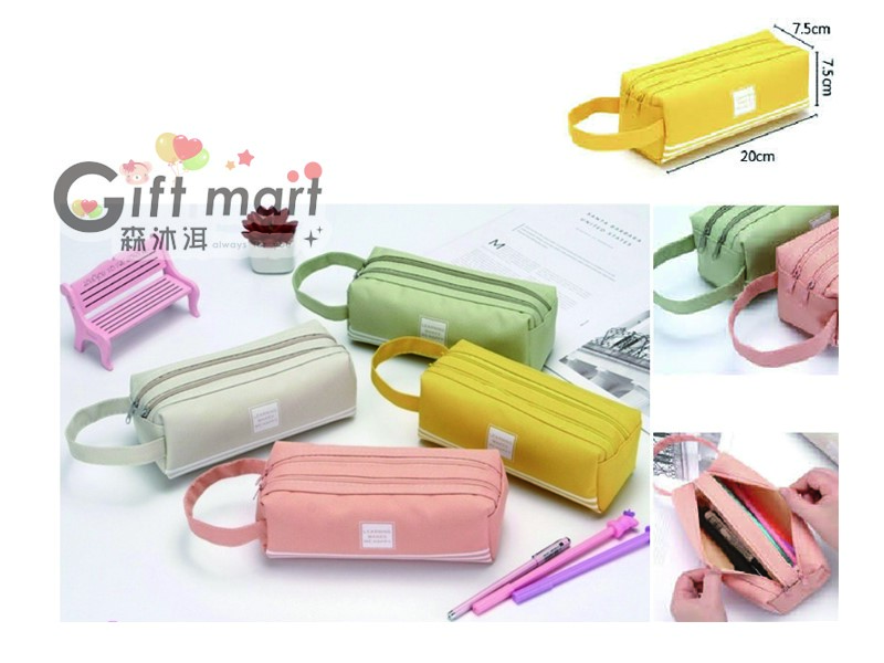 雙層文青筆袋+橡皮擦+側壓自動鉛筆+馬卡龍廣告筆+15cm卡通廣告尺-文具組