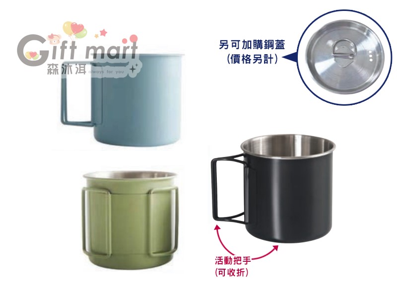 雙層304不鏽鋼隔熱可收折把手杯_300ml