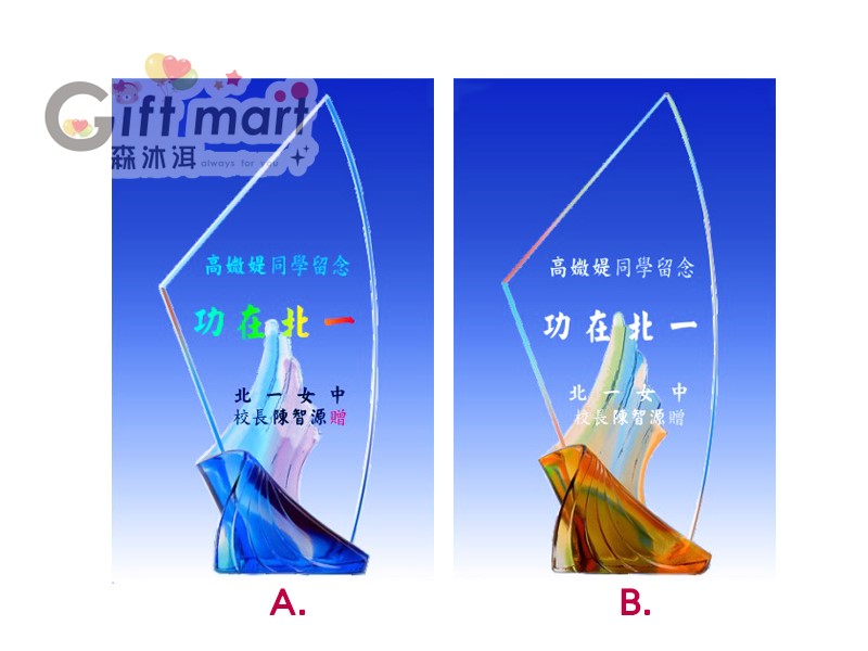 琉璃金屬水晶系列獎座(21x6.5)(藍)