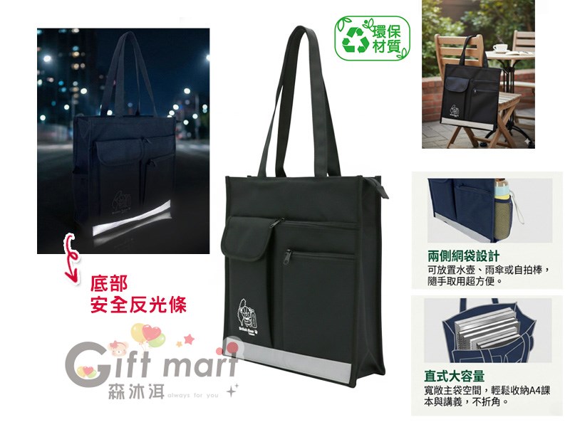 MIT台灣製造/台製PET環保紗材質(環保材質), 採用回收保特瓶製成, 環保耐用愛地球兩側網袋 可放置水瓶、雨傘或自拍棒可裝A4資料, 主袋立體寬敞, 輕鬆收納A4書本、不易折角安全反光條設計, 增加夜晚外出的安全性, 讓通勤或放學路途更安全●內零錢袋x1 ●拉鏈袋x3 ●魔鬼氈袋x1 ●側面網袋x2學生上課、補習適用資料袋/文件袋/收納袋/補習袋/側背袋/側背包