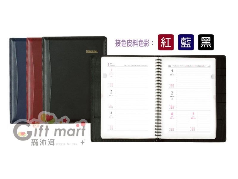 在封面的部份,通常會採用燙金或烙印,烙印是凹進去且沒有顏色的痕跡,而燙金則是閃亮的金箔。內頁則採用印刷方式,通常稱為廣告頁,尚可在頁首幫你插頁需另外報價,歡迎來電討論!!※橫式週計畫(左三右四),簡式農民曆 ※另有25K規格,尺寸21x15cm(價格另計,歡迎洽詢)※活頁26孔工商日誌/行事曆/筆記本/記事本/記事簿