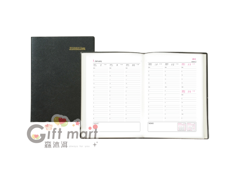 減約外型,觸感極佳,增添了幾分時尚質感!優質的皮革品質,搭配上完美的車功與簡約的設計,讓平凡的工商日誌多了一份高貴的質感。每款都能客製化加印公司LOGO與資料。送人自用兩相宜,是公司企業年節禮贈品的首選!年計劃,月計劃-直式週計劃日誌工商日誌/行事曆/筆記本/記事本/記事簿※另有25K規格,尺寸21x15cm(價格另計,歡迎洽詢)