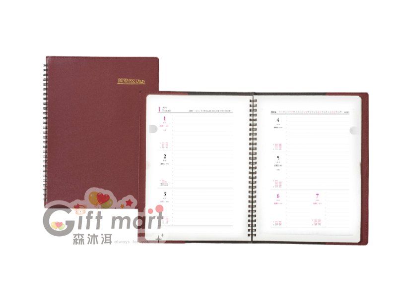 簡約外型,觸感極佳,增添了幾分時尚質感!優質的皮革品質,搭配上完美的車功與簡約的設計,讓平凡的工商日誌多了一份高貴的質感。每款都能客製化加印公司LOGO與資料。送人自用兩相宜,是公司企業年節禮贈品的首選!橫式週計劃(左3右4),簡約式農民曆工商日誌/行事曆/筆記本/記事本/記事簿※另有25K規格,尺寸21x15cm(價格另計,歡迎洽詢)